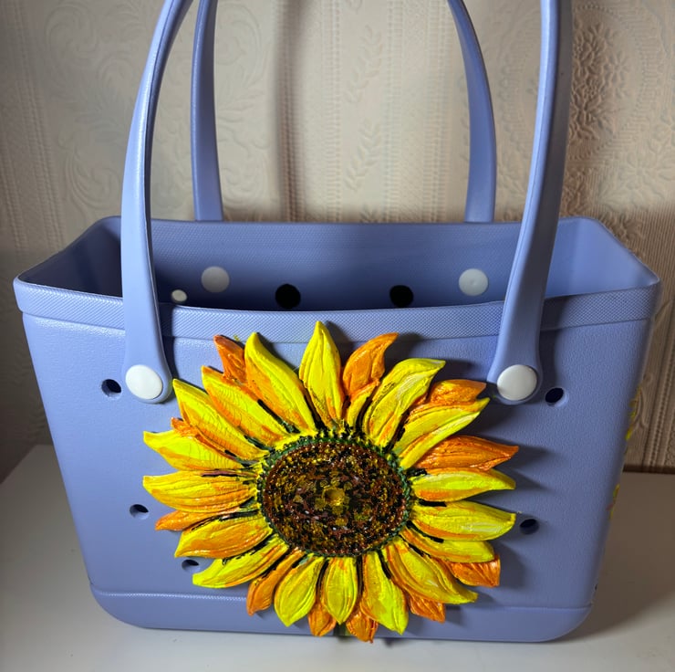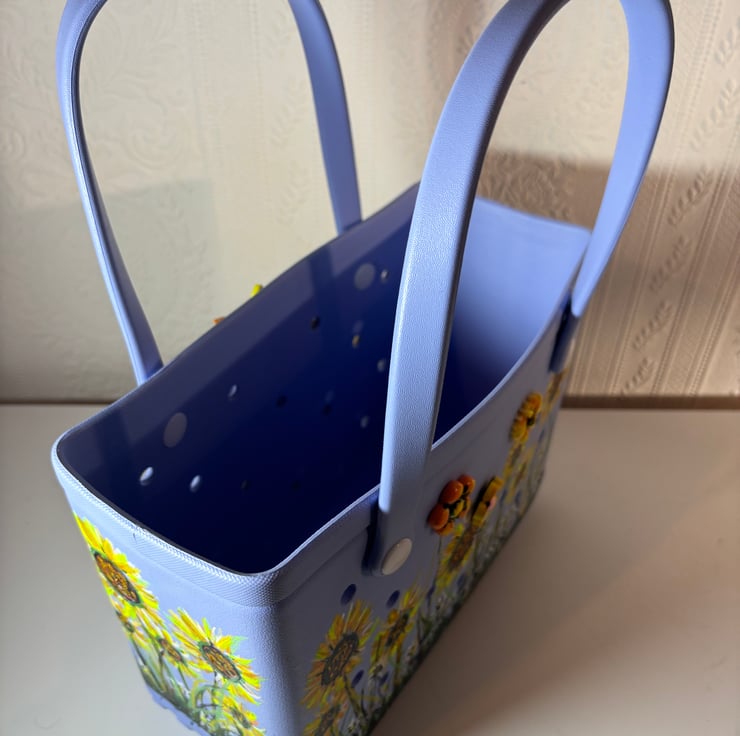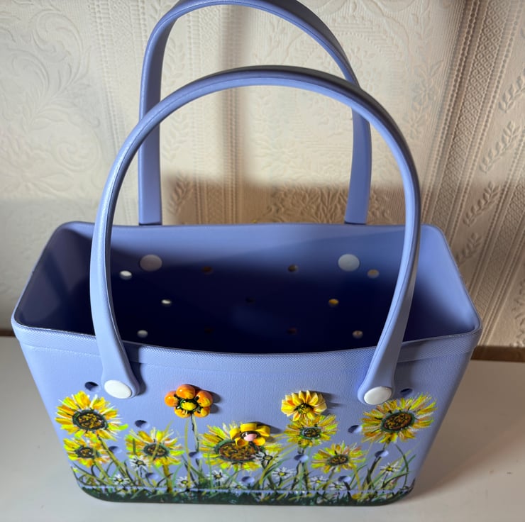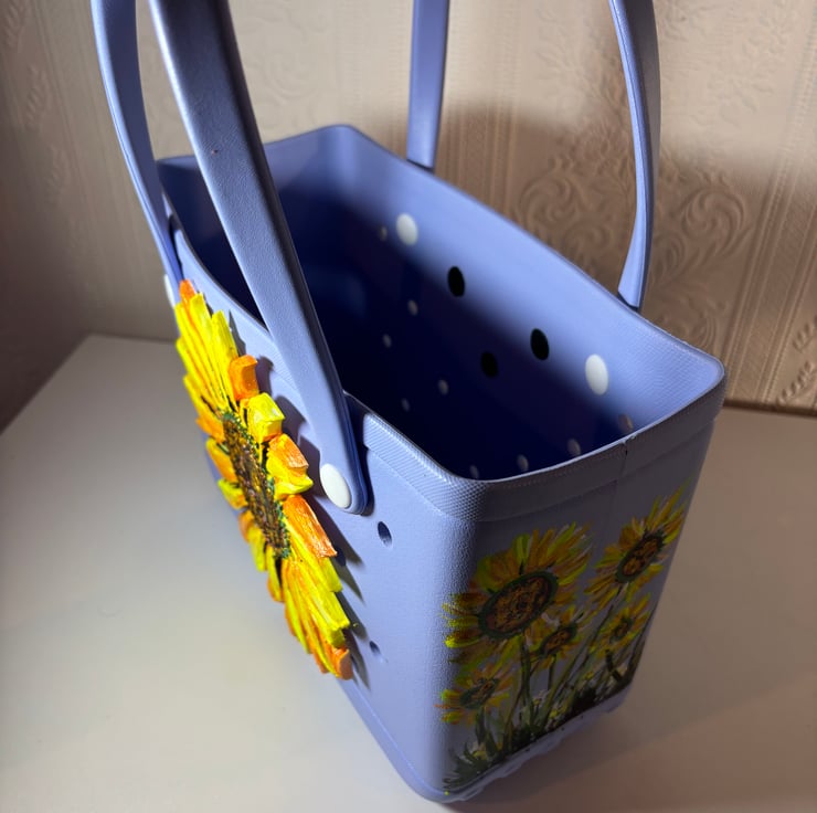 A hand painted and sealed Sunflower bag by Andrew Jenkins