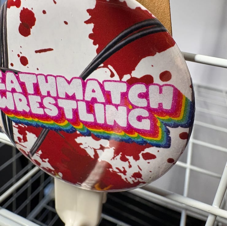 Deathmatch wrestling glitter text button Badge, Pro Wrestling Themed AEW WWE NXT