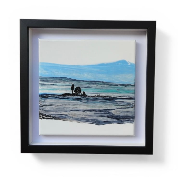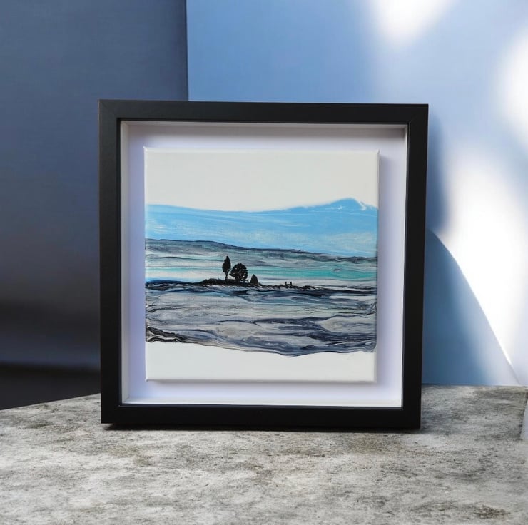 Depicting Northumberland hills series , in shimmering silver and vibrant blues shimmering in the winter light .