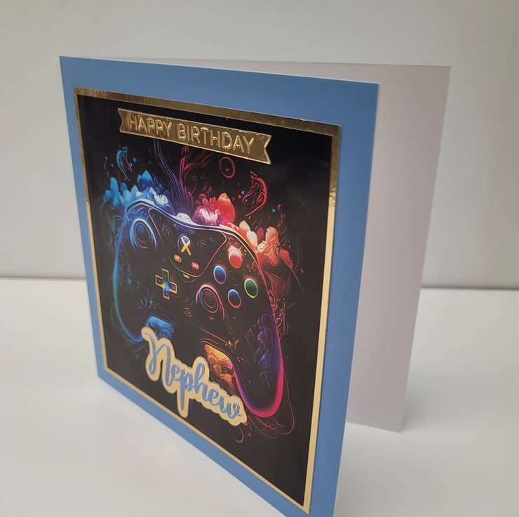 This card combines modern gaming style with a premium finish, making it feel extra special. The bold colours and gold details give it a standout look that teenage boys and gaming fans will love.