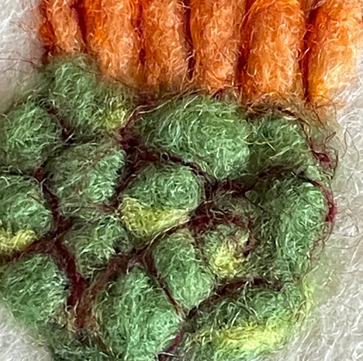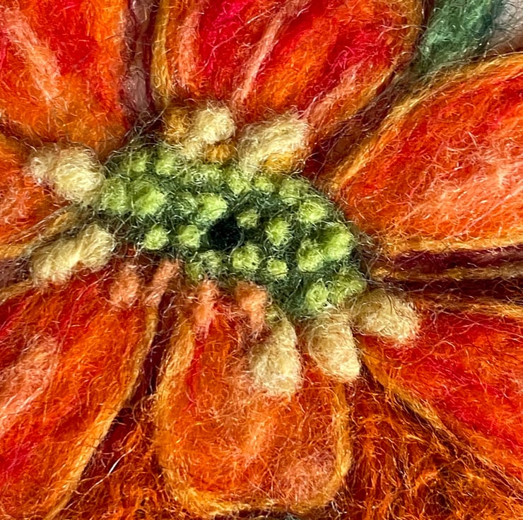 The form and shape of the Zinnia inspired my needle felting, The gorgeous tones of orange in the flower was exciting to recreate as a hand felted artwork