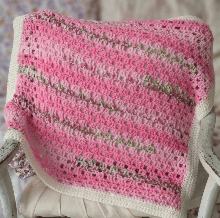 I wanted to make a little blanket and add a pretty border and I thought the wool would make a very pretty vintage-style blanket with its texture and blossom effect throughout.