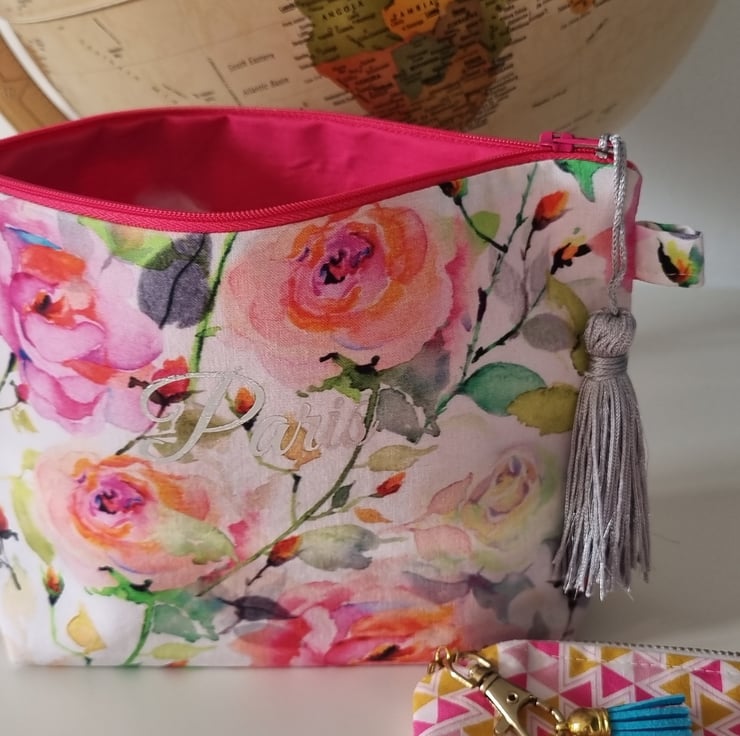 Silver wording says Paris. This bag also has a silver colour tassel with a pink zip and matching pink lining. Stunning!