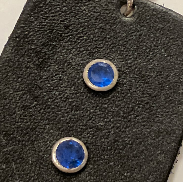 1" nickel plated Mystical Wizard screw back concho is a chicago screwback button and is screwed onto the leather rectangle shape. There are also 3 Blue Gemstones riveted onto the leather rectangle