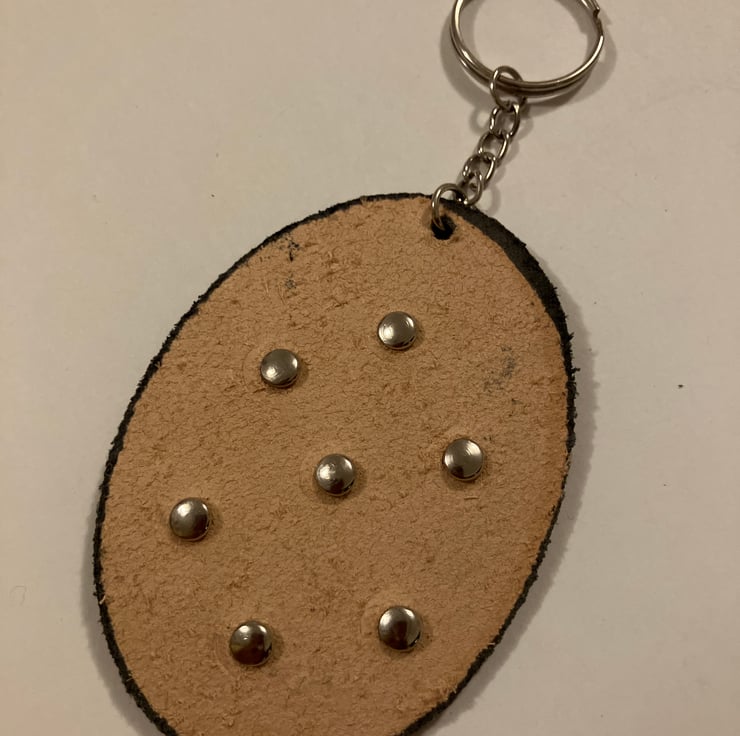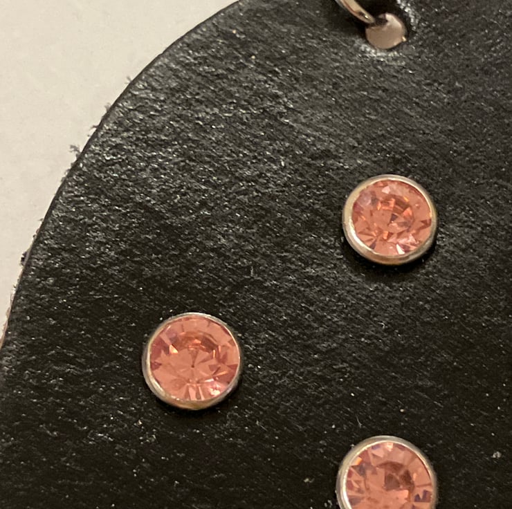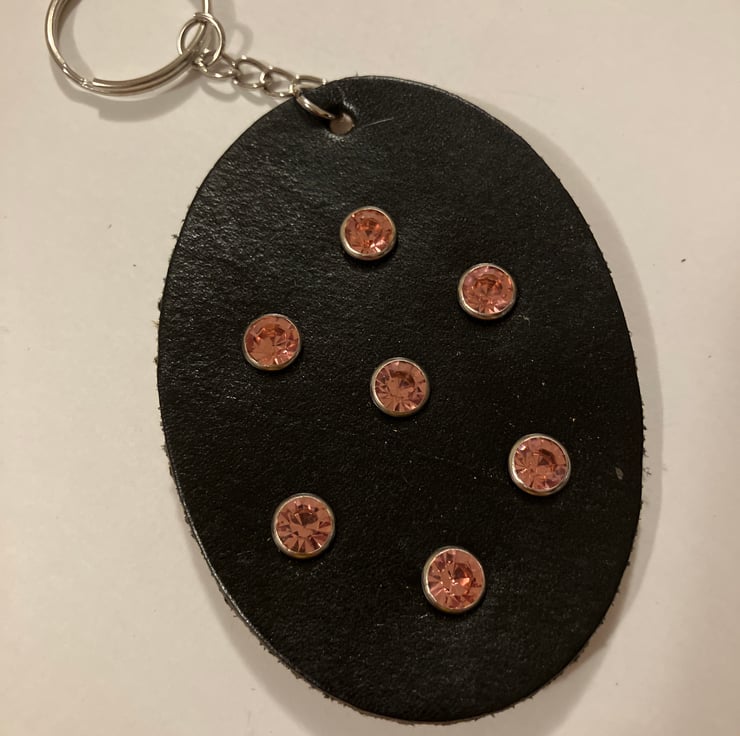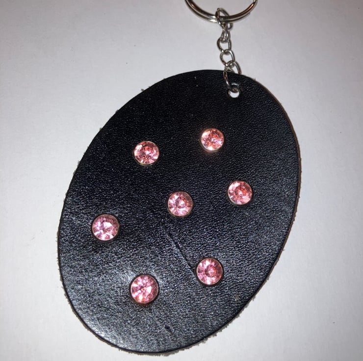 Black Leather Keyring with 7 Pink Gemstones