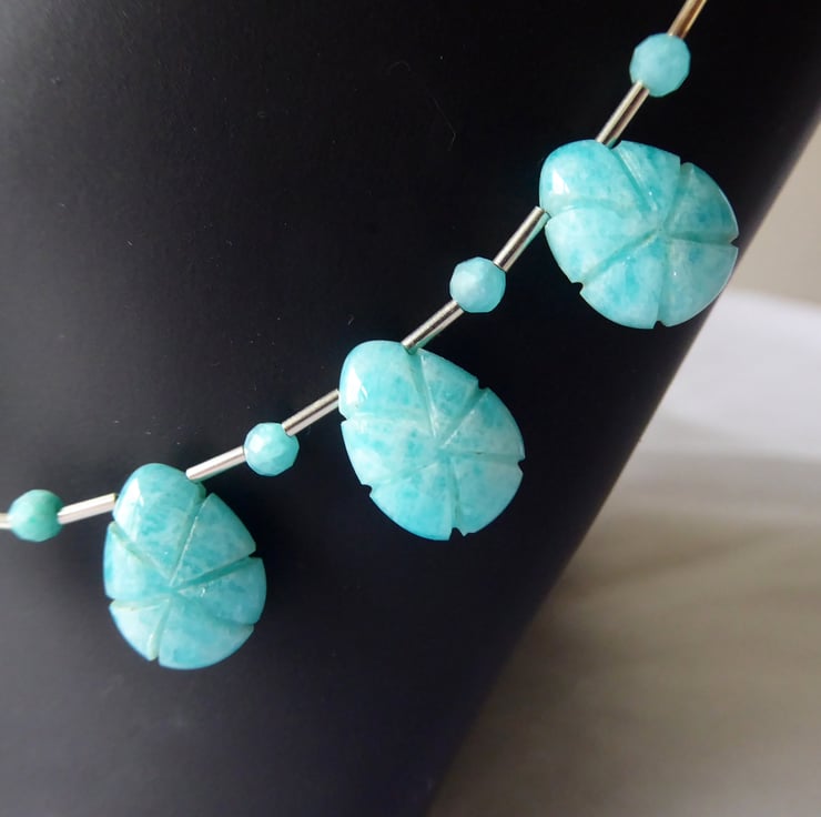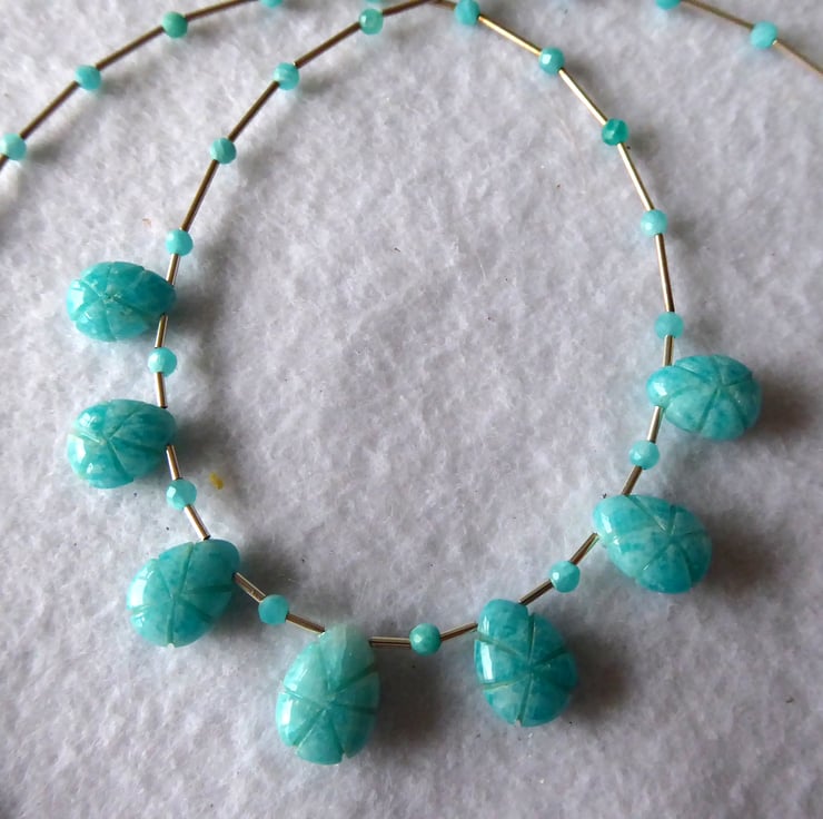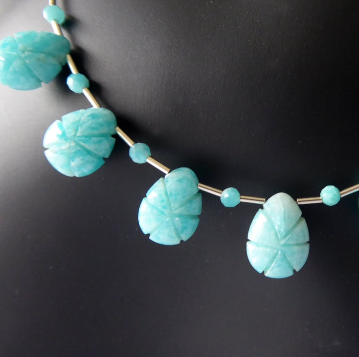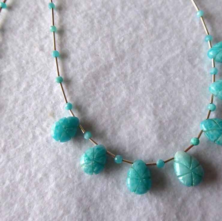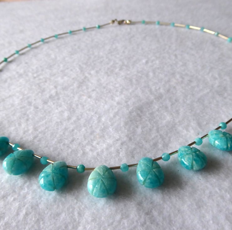 Amazonite Carved Teardrop and Sterling Silver Necklace