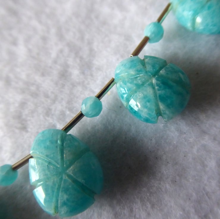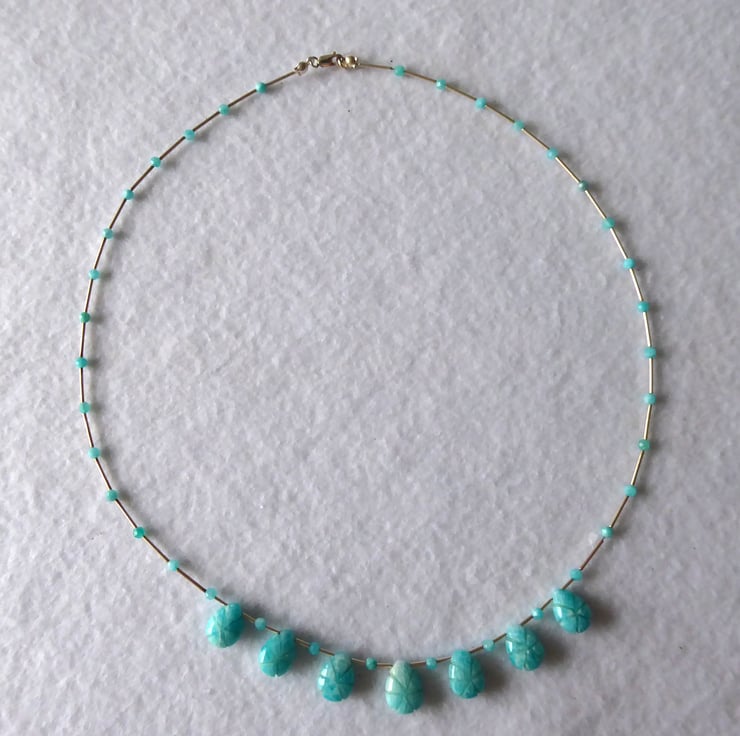 The Necklace is accented with tiny faceted amazonite and sterling silver tube beads.