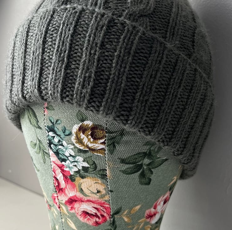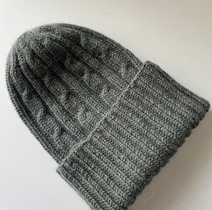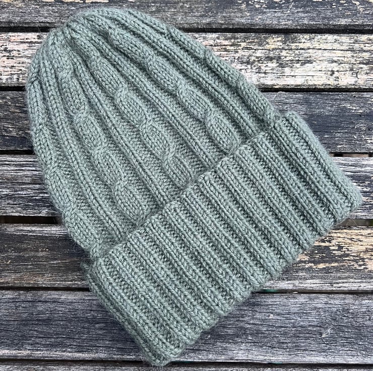 This hat is knitted from Drops Lima, color khaki.Composition: 65% Wool, 35% Alpaca.Fits a head circumference of 57-59 cm.