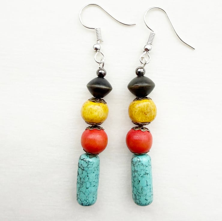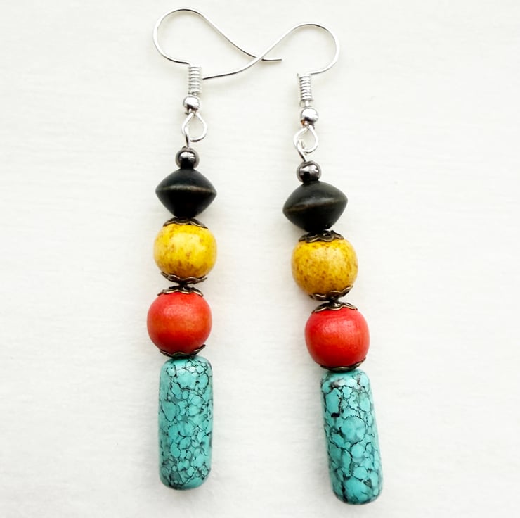 Moroccan Colours Aqua Orange Yellow Dark Brown Dangle Drop Handmade Earrings