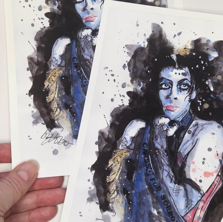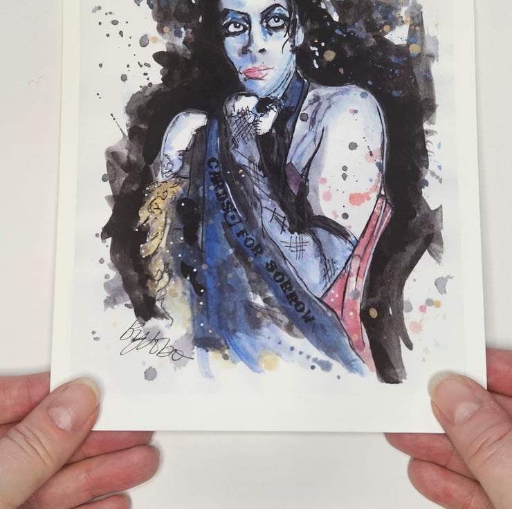 Printed to preserve the depth and texture of the original artwork, this print is ideal for fans of cult cinema, alternative art, and expressive portraiture.