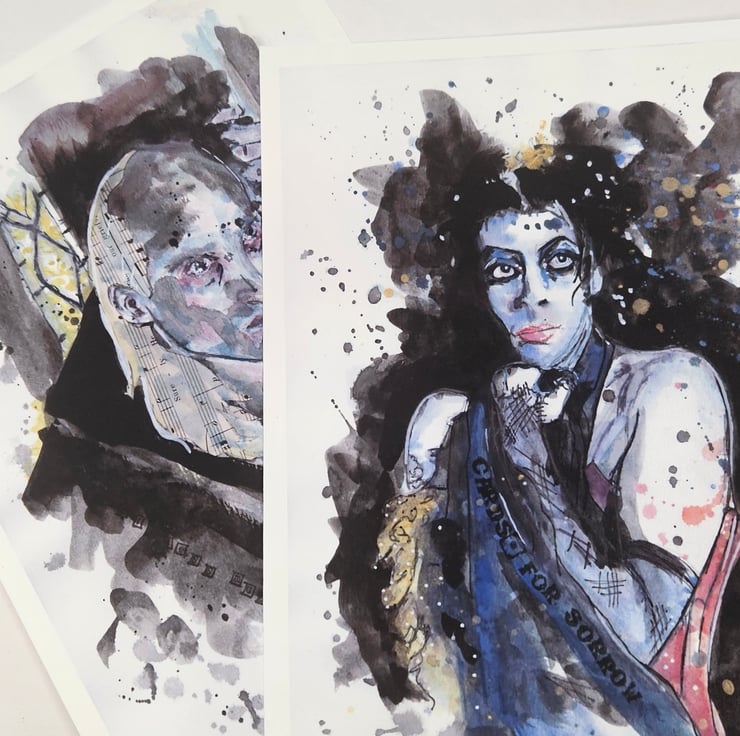 Bring a bold splash of emotion and character to your space with this watercolour and mixed media portrait. Featuring expressive brushwork, splashes of colour, and intricate detailing, this artwork captures a striking figure in a dramatic, thought-provoking composition.