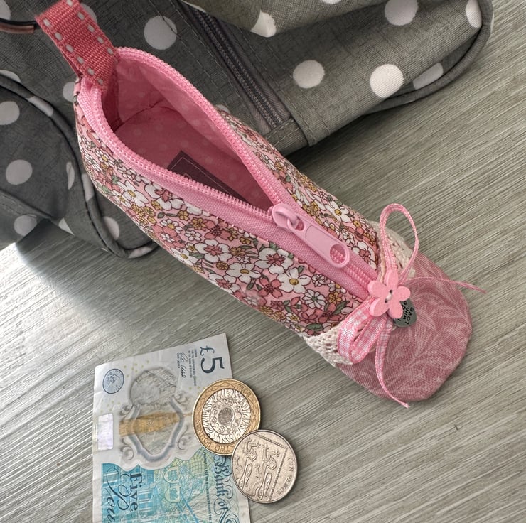- Shoe shaped mini zip purse inspired by ballet flats