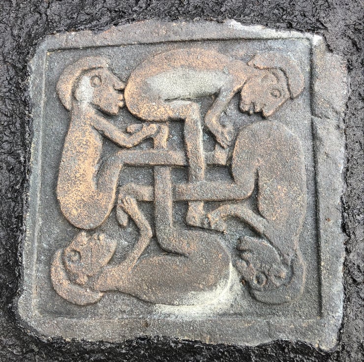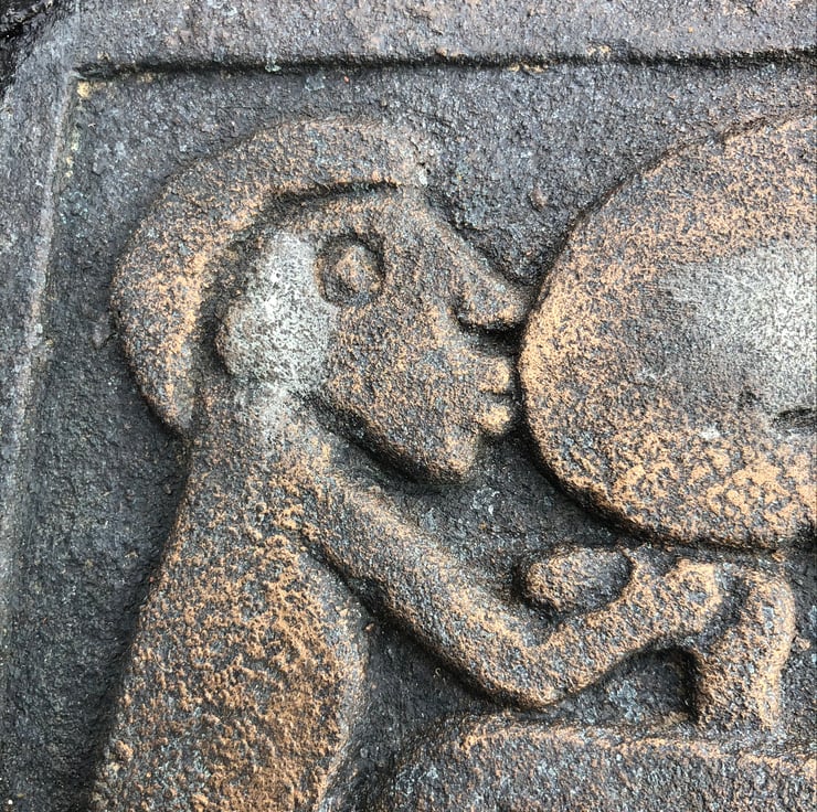 Faithful reproduction of an image featured on a Pictish stone in Meigle Museum.