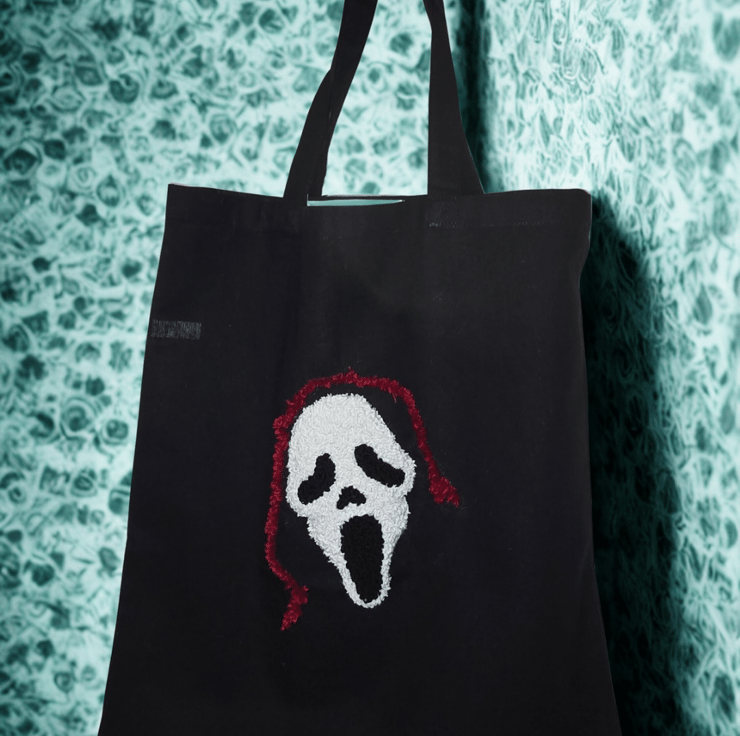 Obsessed with horror and the Scream franchise, I had to make this bag for horror fans. Take it to a convention, shopping. Use for whatever you want.