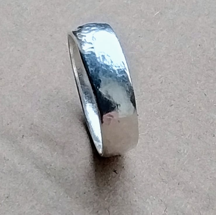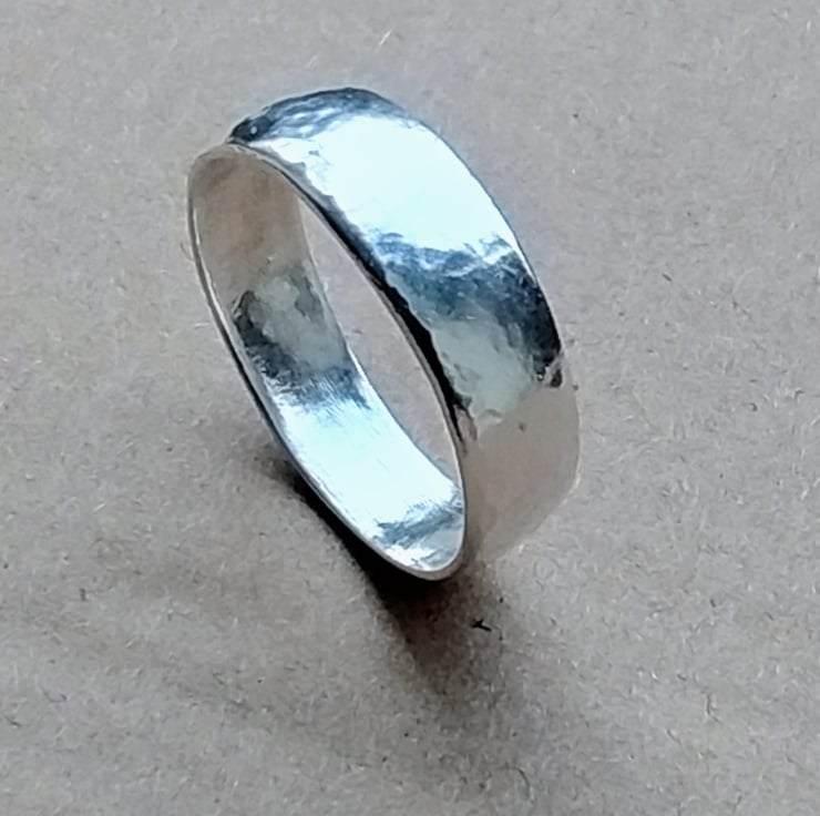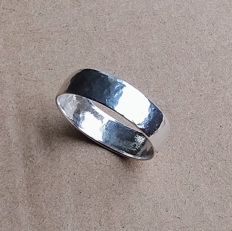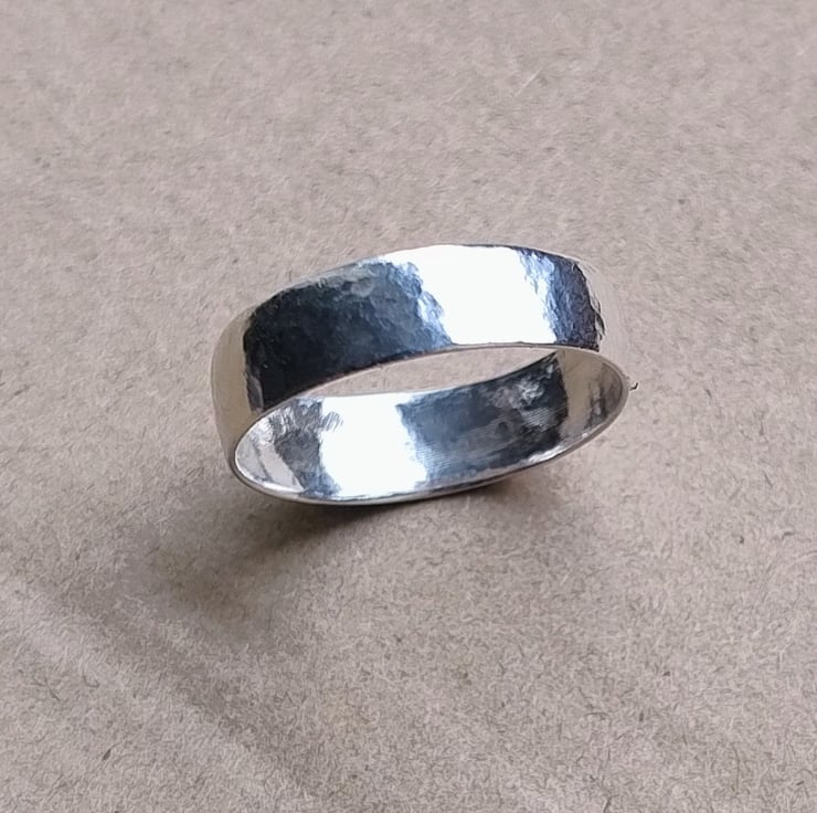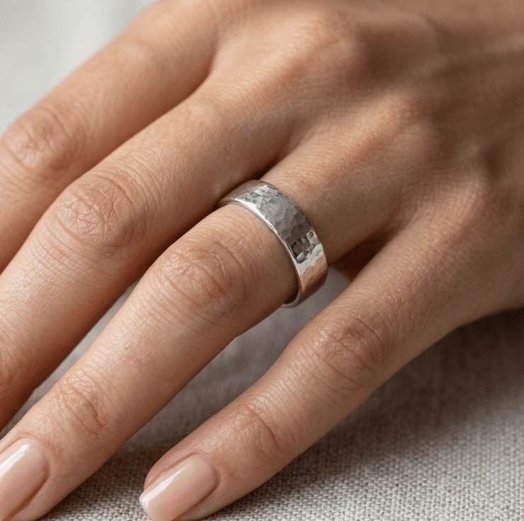 Crafted from pure 999 fine silver, this elegant ring features a subtle hammered texture that catches the light beautifully. Each piece is shaped, hammered, and polished by hand, making every ring truly one of a kind.