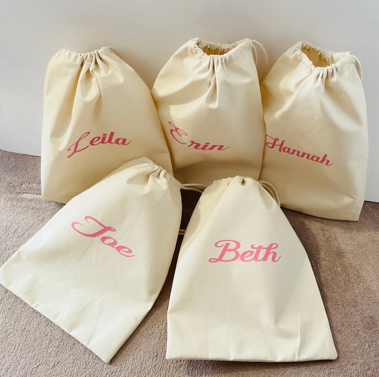 Drawstring bags are so versatile and they are especially pleasing when they have a name or writing on them using HTV vinyl.