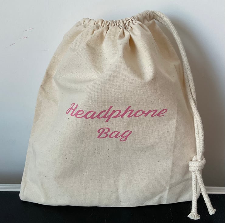 The bag size is approximately 14" height x 10.5" wide (35cm x 27cm), with a single 6mm cord drawstring.