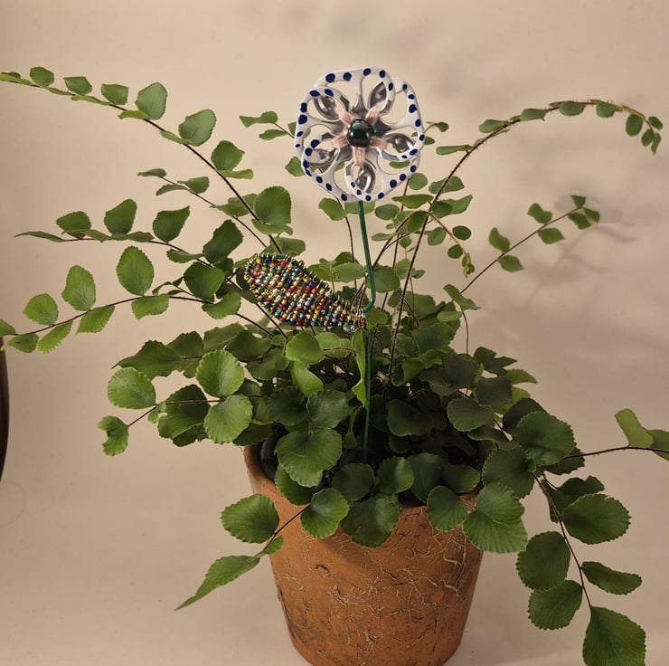 These flowers are perfect to accompany and brighten up your pot plants. Green stem with multi-colour glass beaded leaf and stem. You will find a wide variety of colours in my shop. Discount if you buy 3, or more.