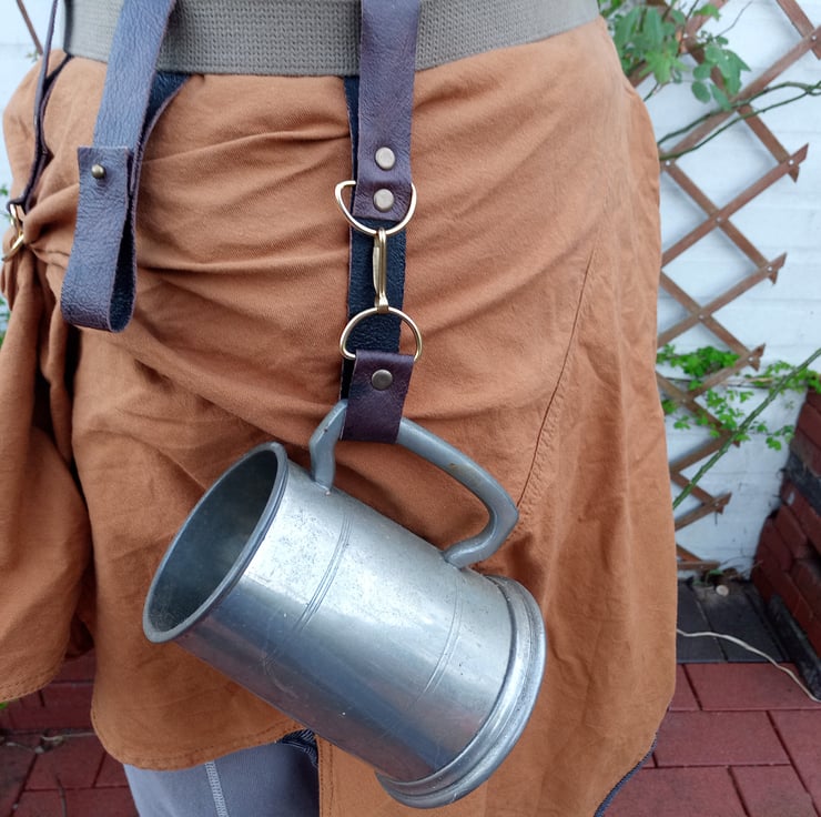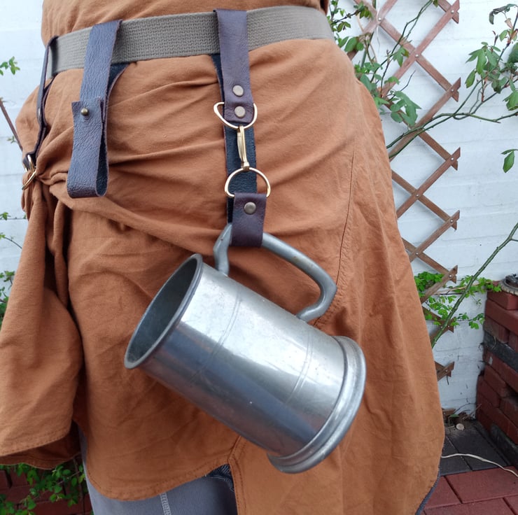 This is a leather cup / mug holder holster to attach to your belt and hang you cup / mug from for all sorts of outfits from cosplay to everyday use