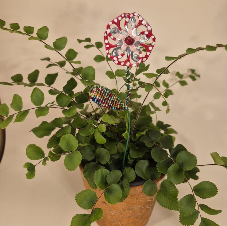 These flowers are perfect to accompany and brighten up your pot plants. Green stem with multi-colour glass beaded leaf and stem. You will find a wide variety of colours in my shop. Discount if you buy 3, or more.