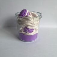 A handmade floral-inspired candle featuring a sculpted flower center and a soft whipped wax finish.