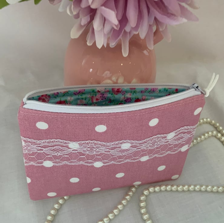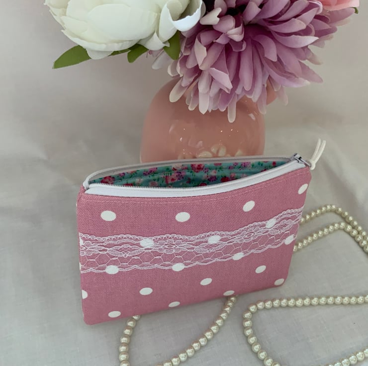 Zipped Purses, Pouch, Small Cosmetic Bag, Accessory Purse, Spotty