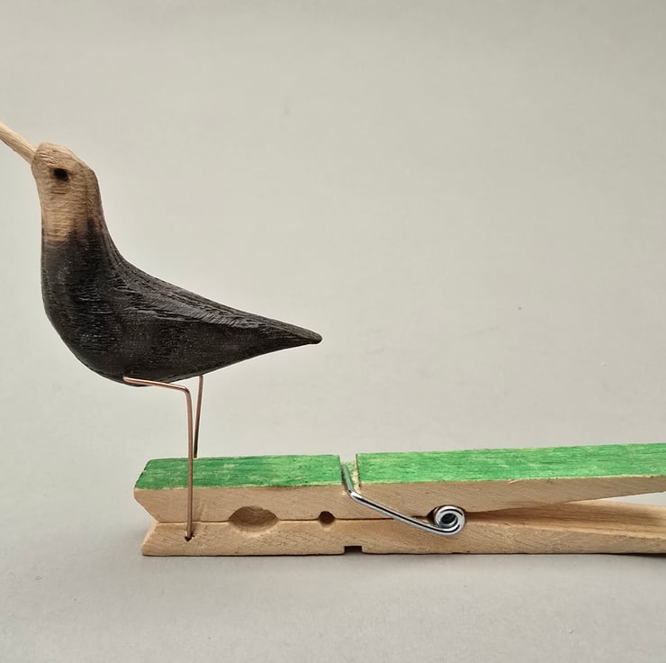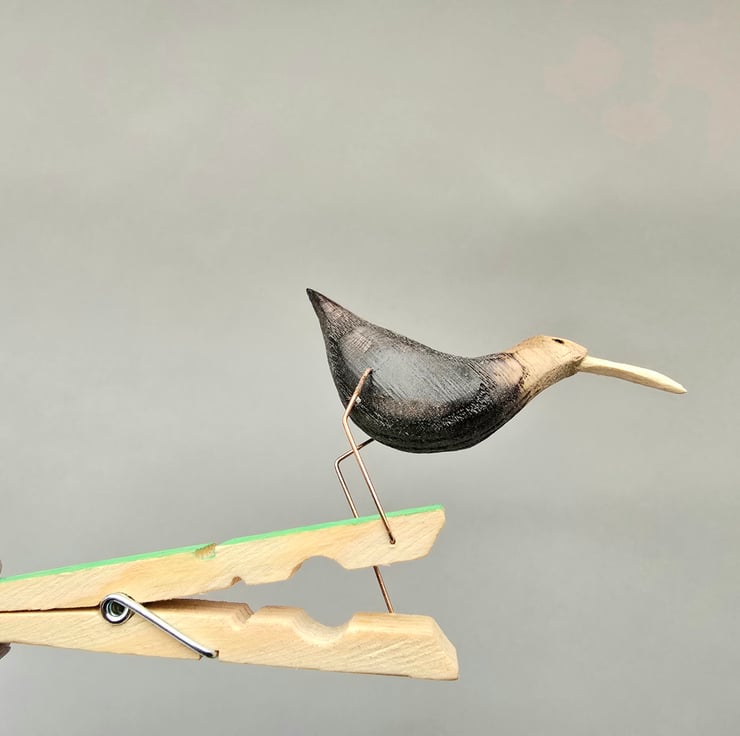 Pecking bird on a clothes peg. Click between the first two images to get an idea of the action.