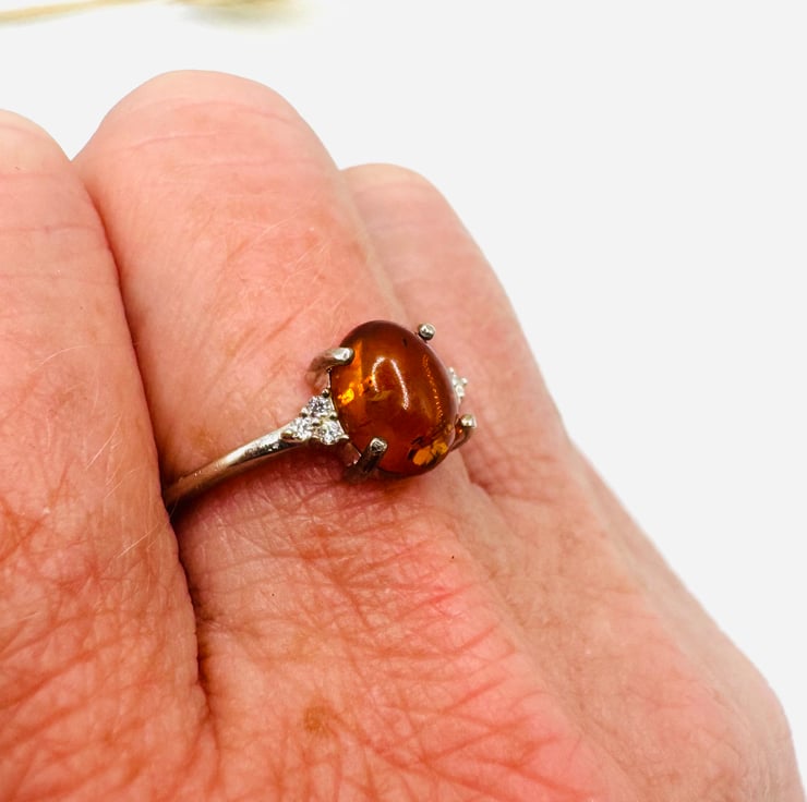 Sterling Silver, Amber and Topaz Ring size L