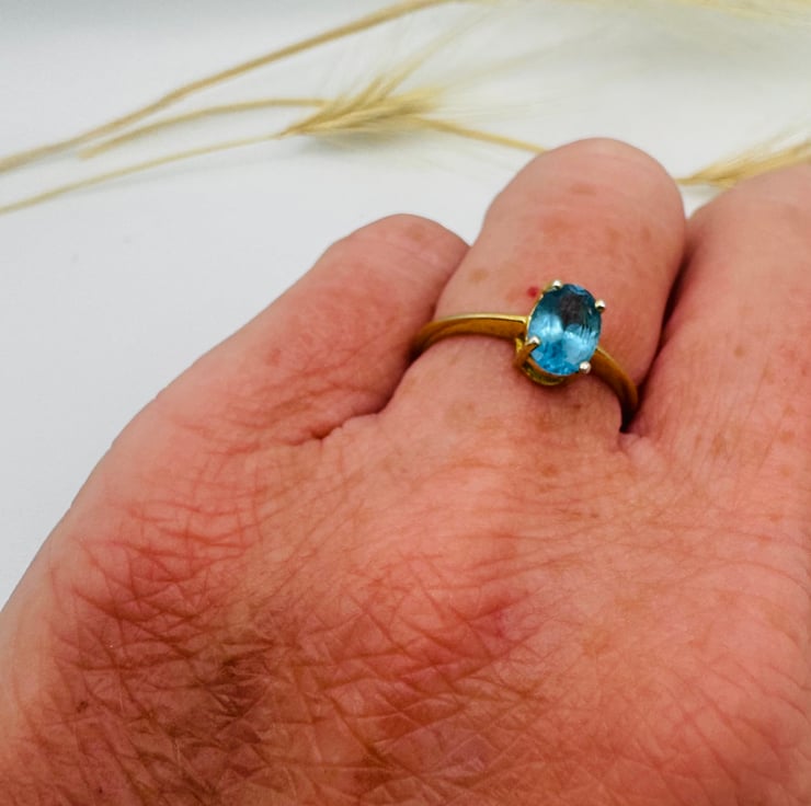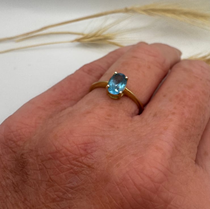 Sterling silver, 18ct gold and Swiss blue topaz ring size J