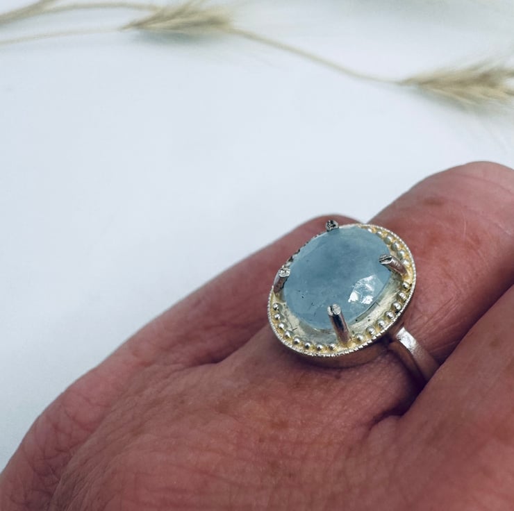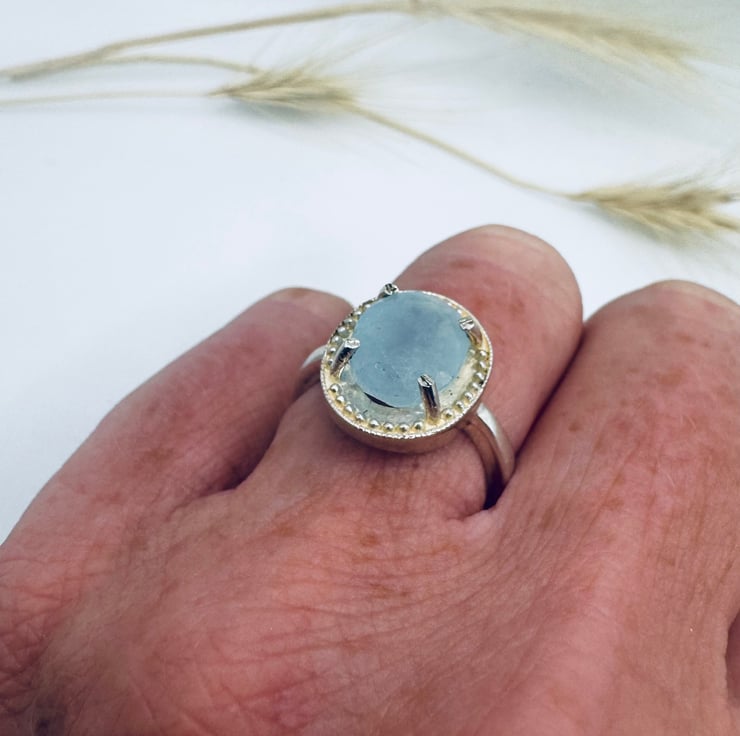 Sterling silver and Aquamarine size J