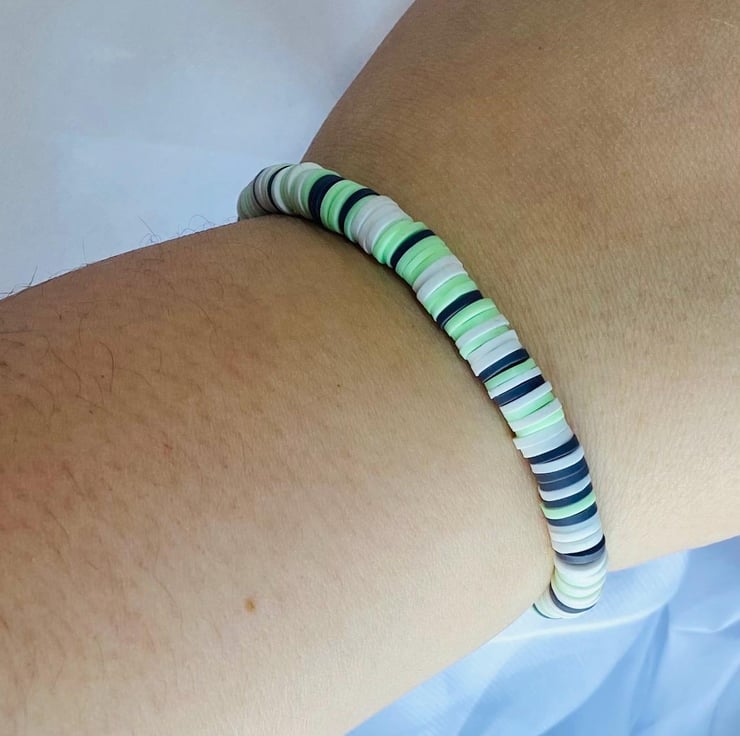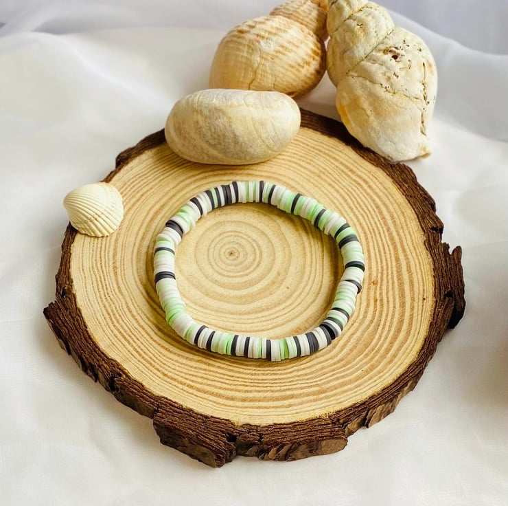 Handmade clay bead bracelet designed for everyday wear.