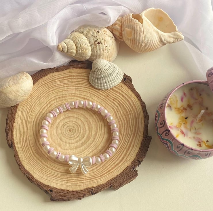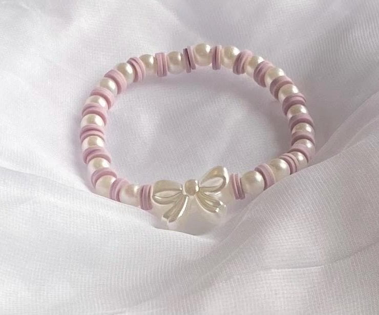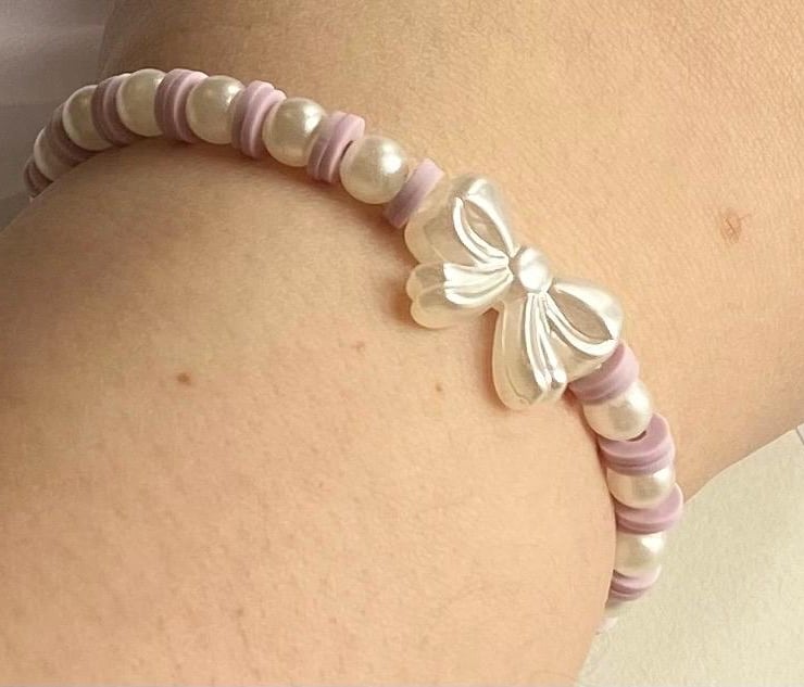 Lilac Clay Bead Bracelet with Bow Charm