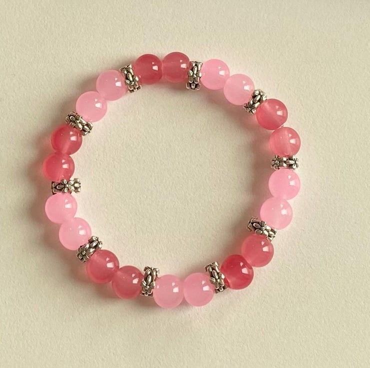 Handmade Blush Pink Glass Beaded Bracelet Everyday Jewelry Bracelet for Women Va