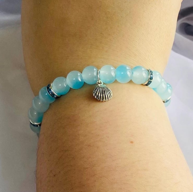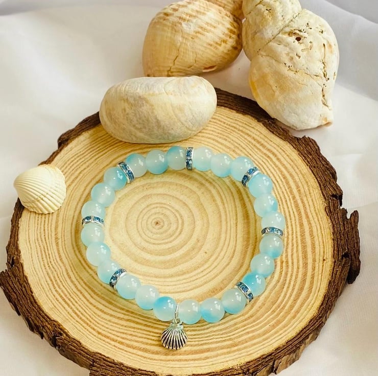 Inspired by soft sea breezes and quiet coastal mornings, Coastal Whisper is a delicate, calming bracelet made with smooth glass beads in gentle ocean and neutral tones.