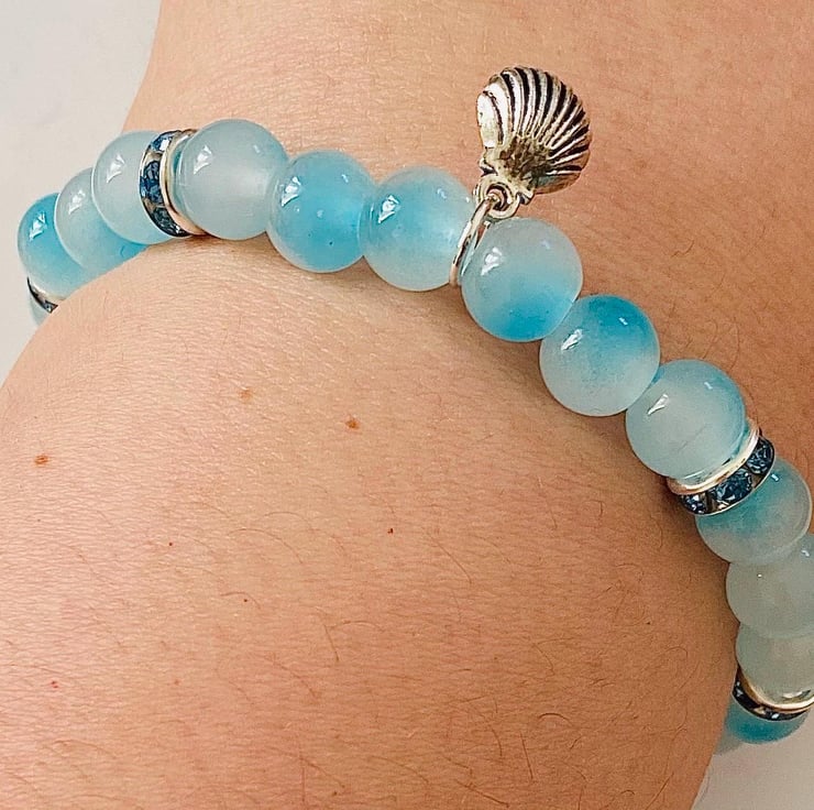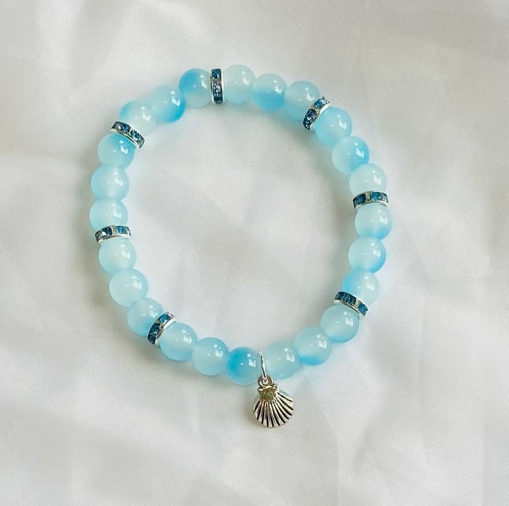 Coastal Whisper Glass Bead Bracelet Blue & Neutral - Stretch Handmade Jewellery