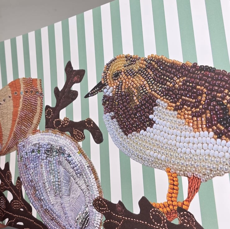 Turnstones are small, characterful shoreline birds often seen darting between rocks and seaweed as the tide shifts. This piece captures that quiet tidal moment, making it perfect for bird lovers, coastal home interiors and anyone with a connection to the sea.