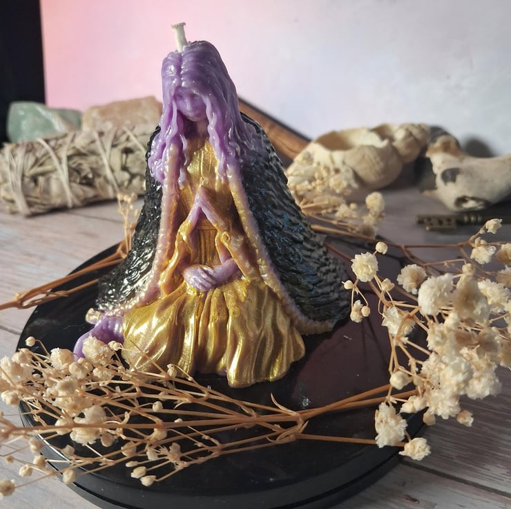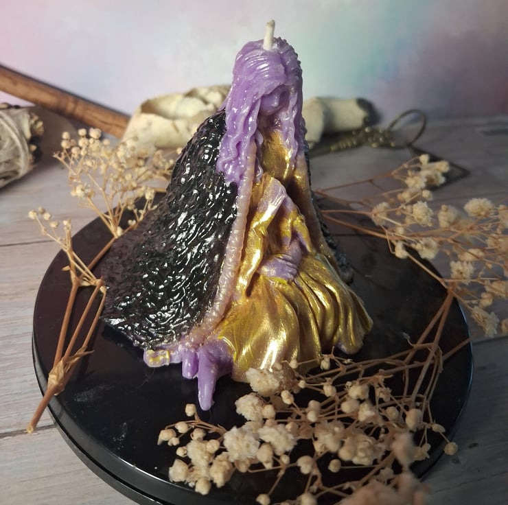 The candle features detailed textures