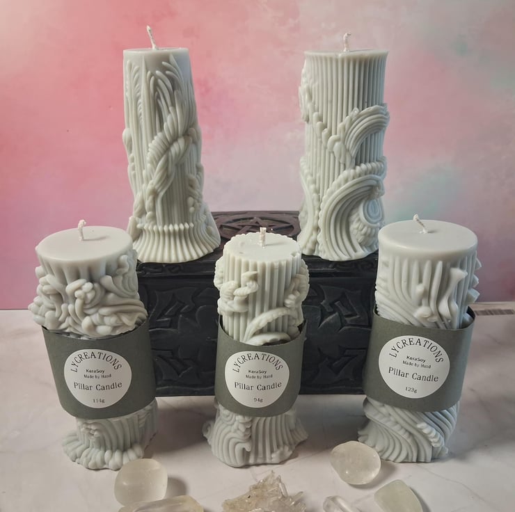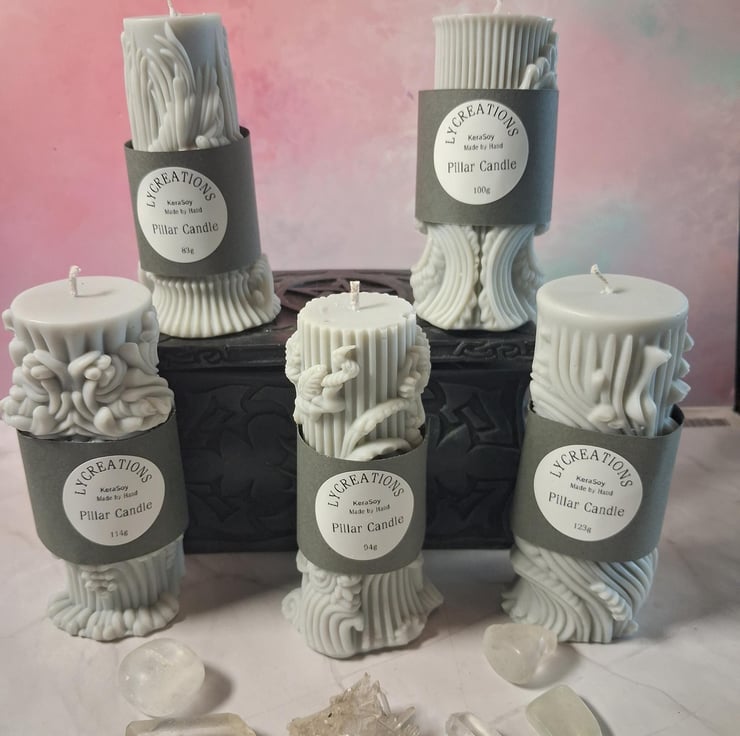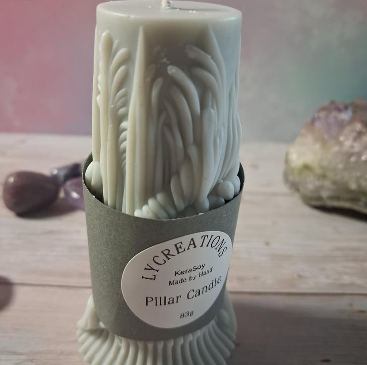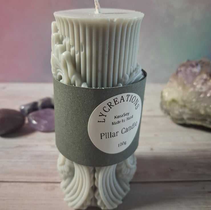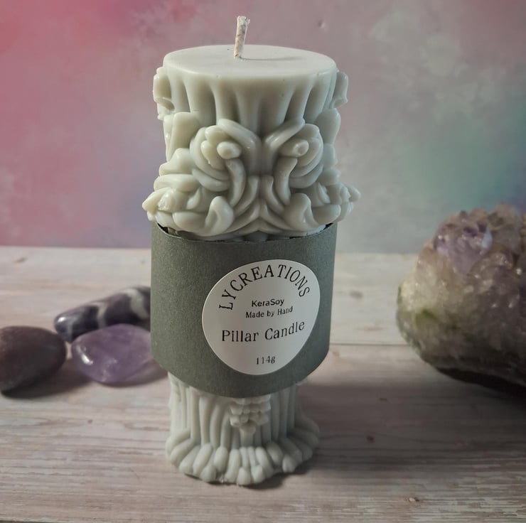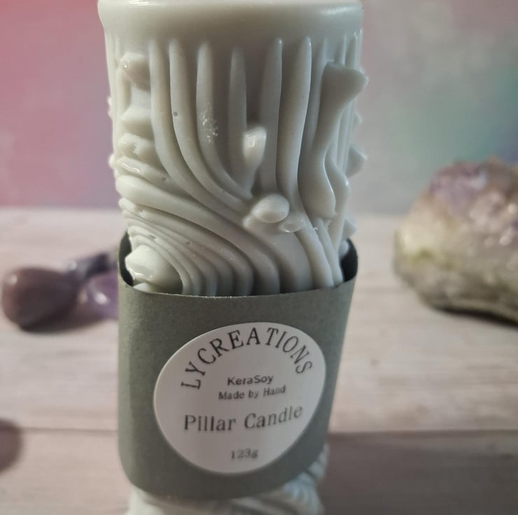 This is a hand-poured, unscented pillar candle made from 100% Kerrasoy wax.
