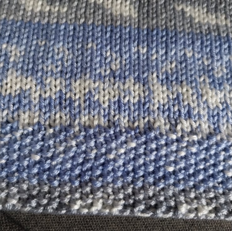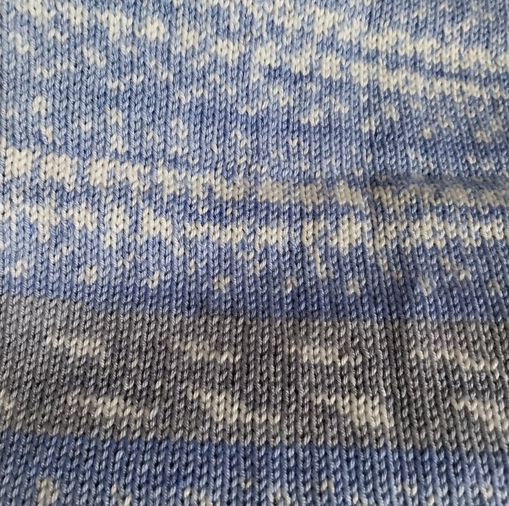 This hand knitted baby blanket is made stitch by stitch in calming shades of blue, soft grey and cream. Cosy, practical and timeless, it is designed to be used and loved every day.