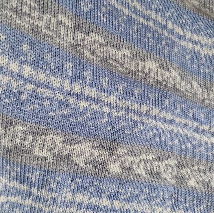 The Fair Isle inspired stripe pattern adds gentle texture while keeping a clean, modern look. The soft colour palette makes it a lovely gender neutral choice, perfect for any nursery style.