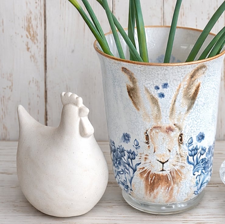 This lovely Hurricane Vase has been painted & decorated to feature Harriet Hare.
