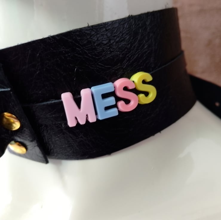 This is another choker I've made with a slightly different wording on it , I've used colourful acrylic letters pastel colours , if you'd like the letters in chrome please let me know as I can do this for you now extra cost