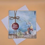 A charming handmade birthday card. The soft beige background with subtle polka dots adds warmth, while gold corner embellishments bring a touch of elegance. Finished with a gold embossed Birthday Wishes sentiment, this card is perfect for animal lovers, nature fans, and anyone who appreciates cute, character driven designs.
