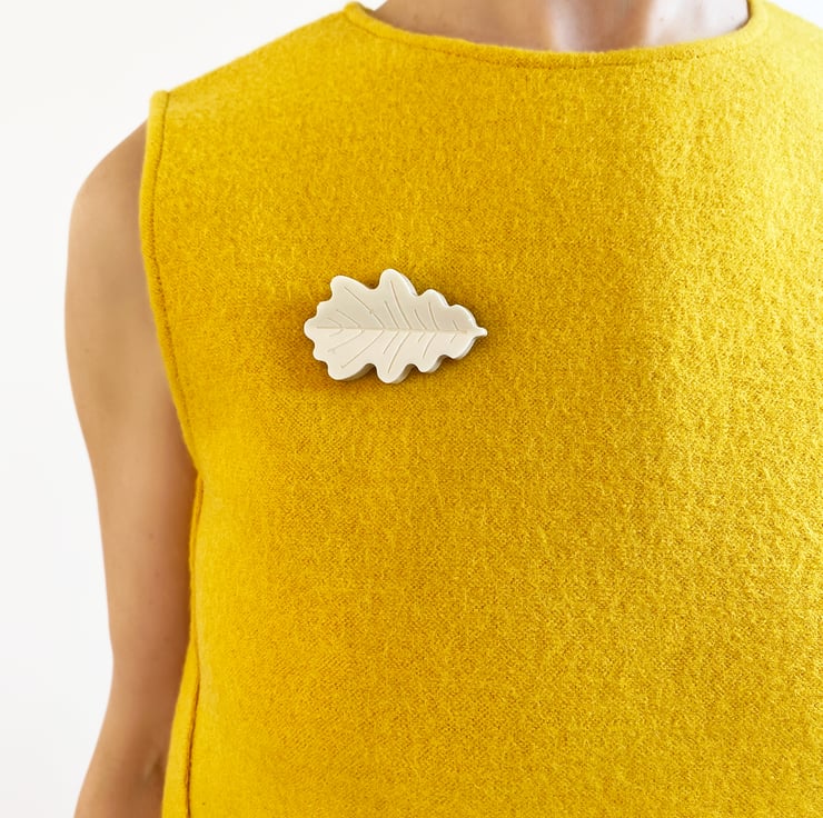 Cast in vibrant coloured resin, these oak leaf shaped brooches are beautiful statement pieces, which will bright up any outfit.