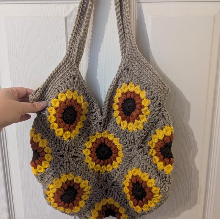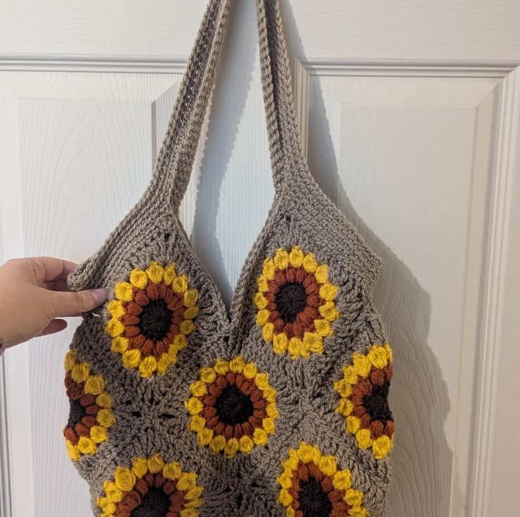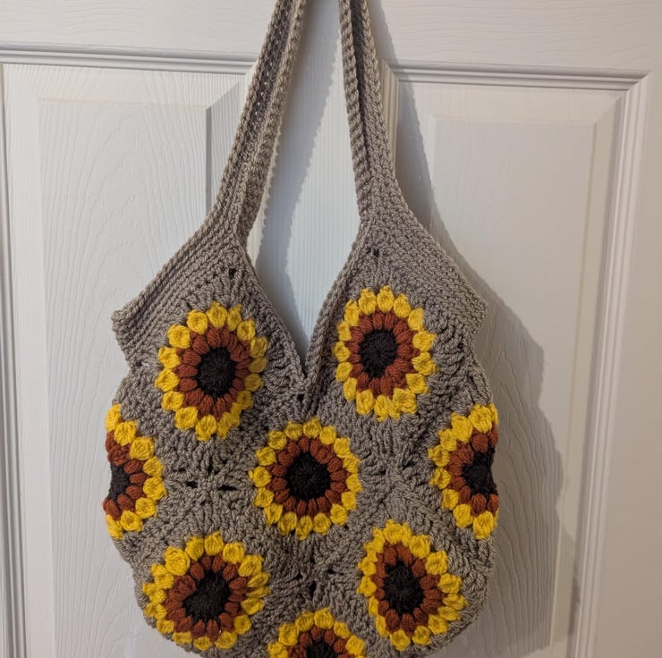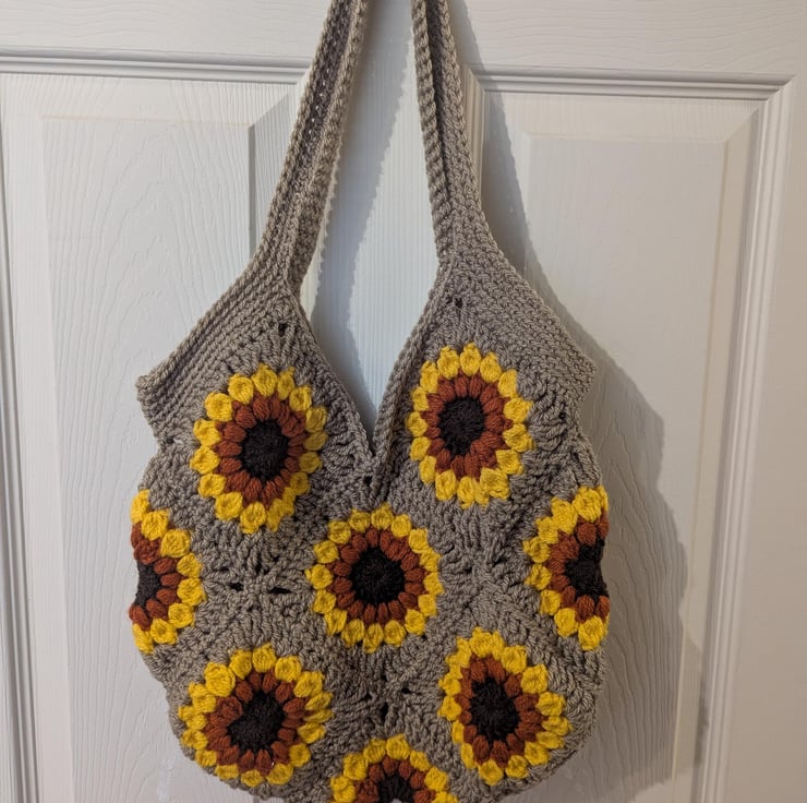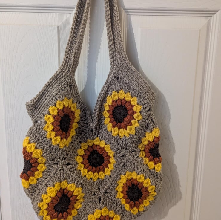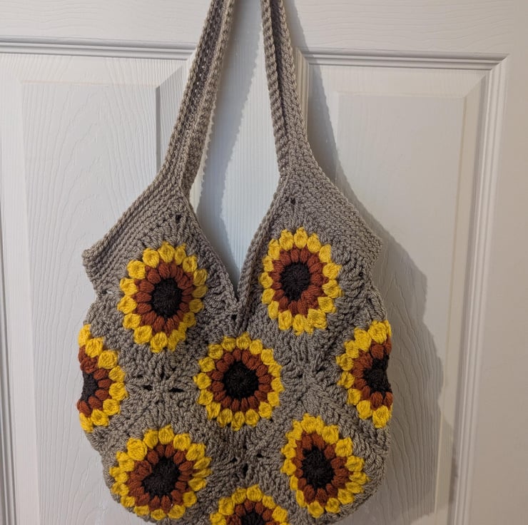 This beautiful bag is made up of crochet granny squares and then sewn together. It can be made in any colours so just message me if you are wanting a different colour palate.
