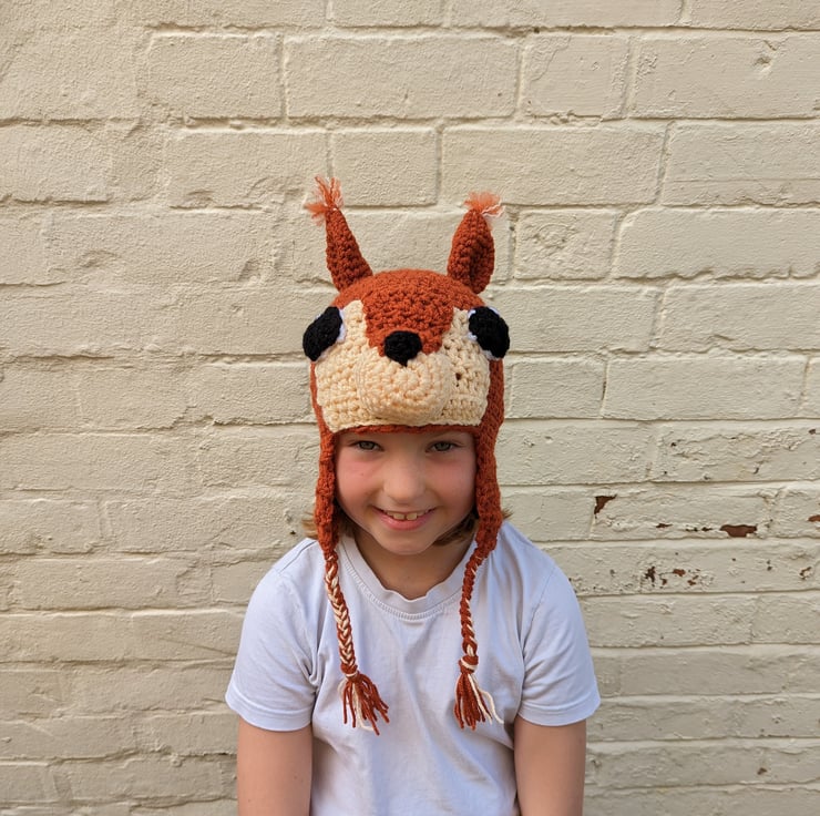 Crochet squirrel hat, winter novelty hat, newborn, child, toddler, adult sizes
