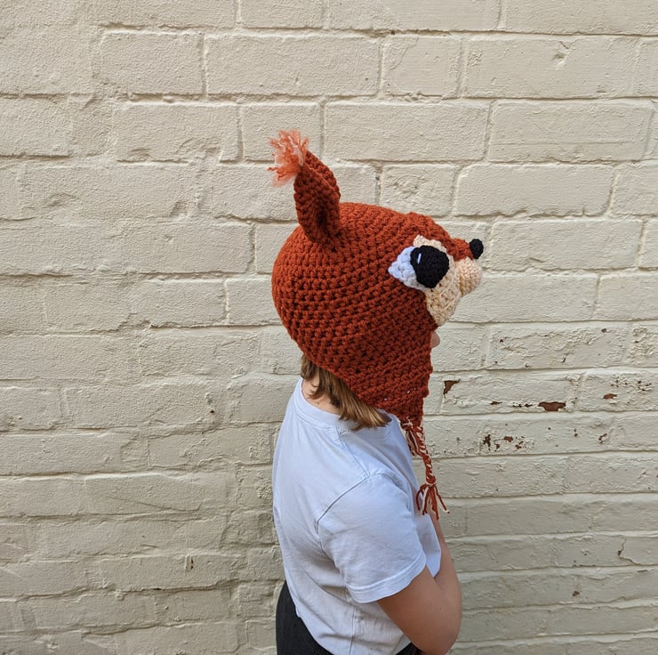 This squirrel hat is a lovely fun playful hat for those who love squirrels.