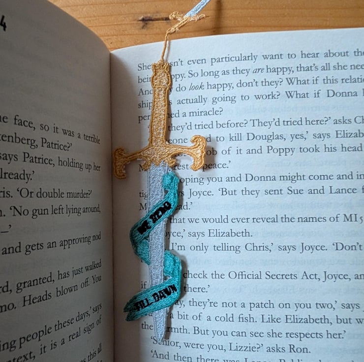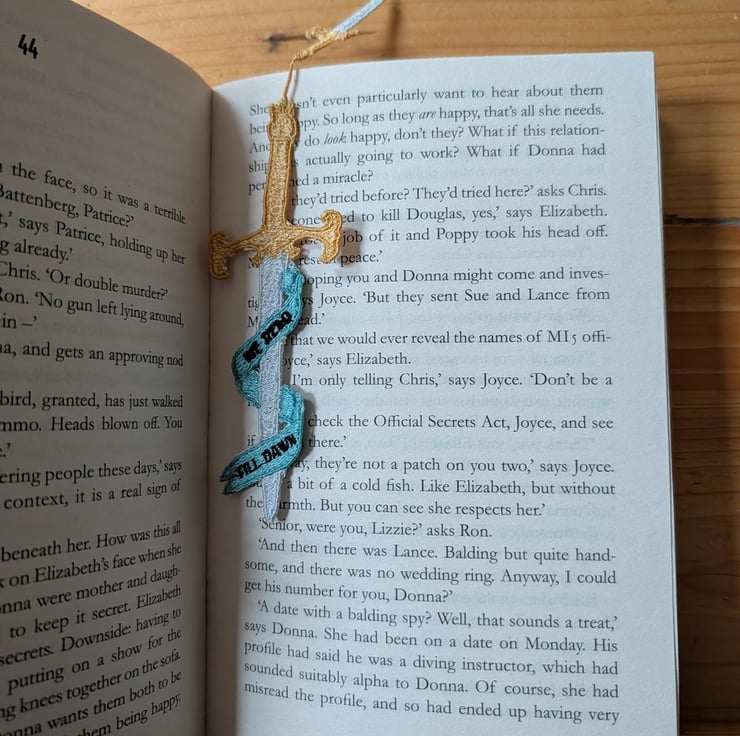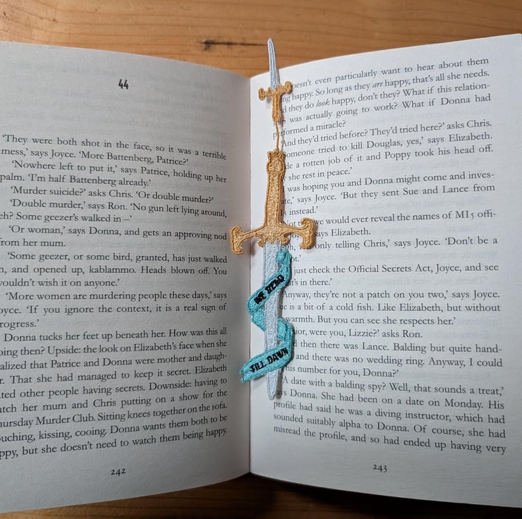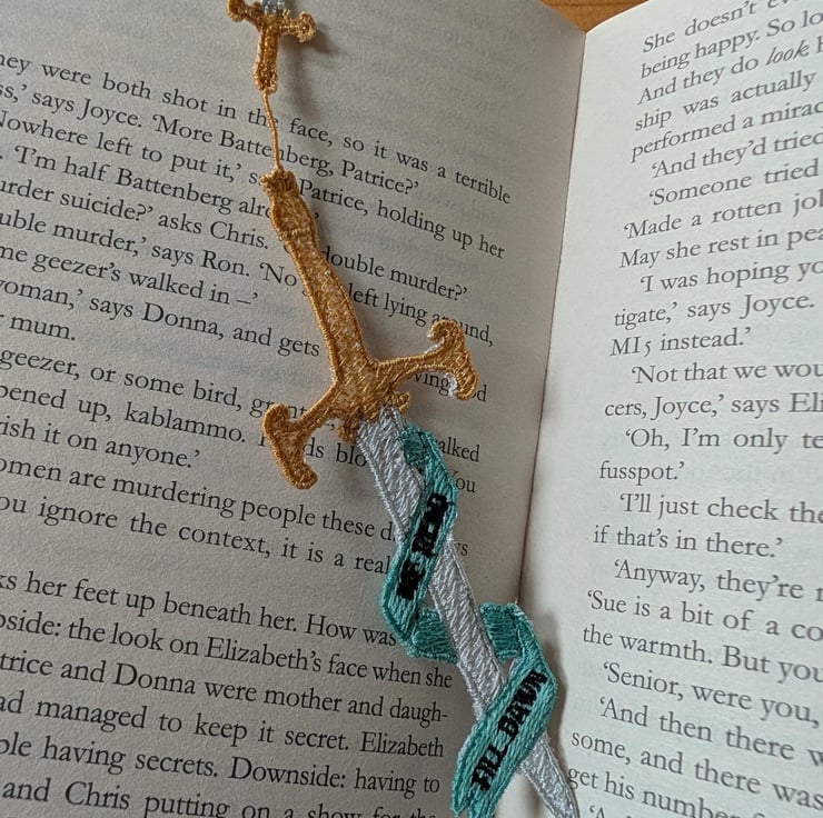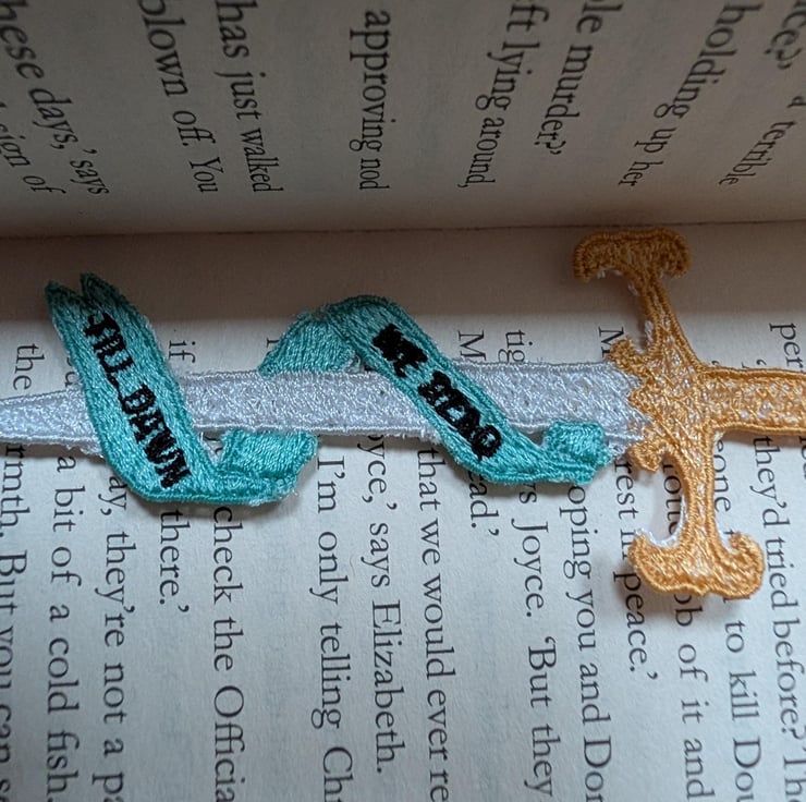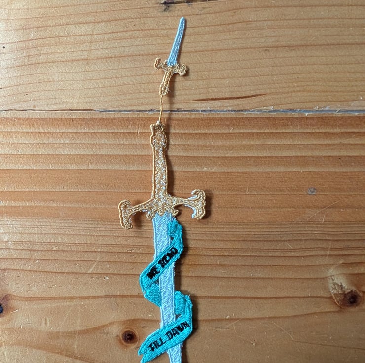 Sword bookmark, machine embroidered, bookish gift, we read till dawn