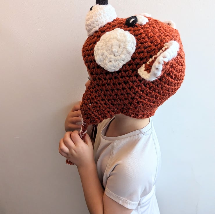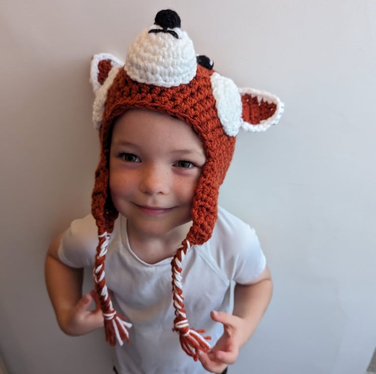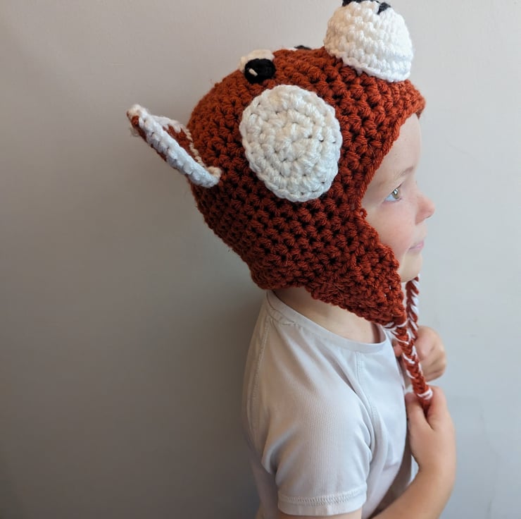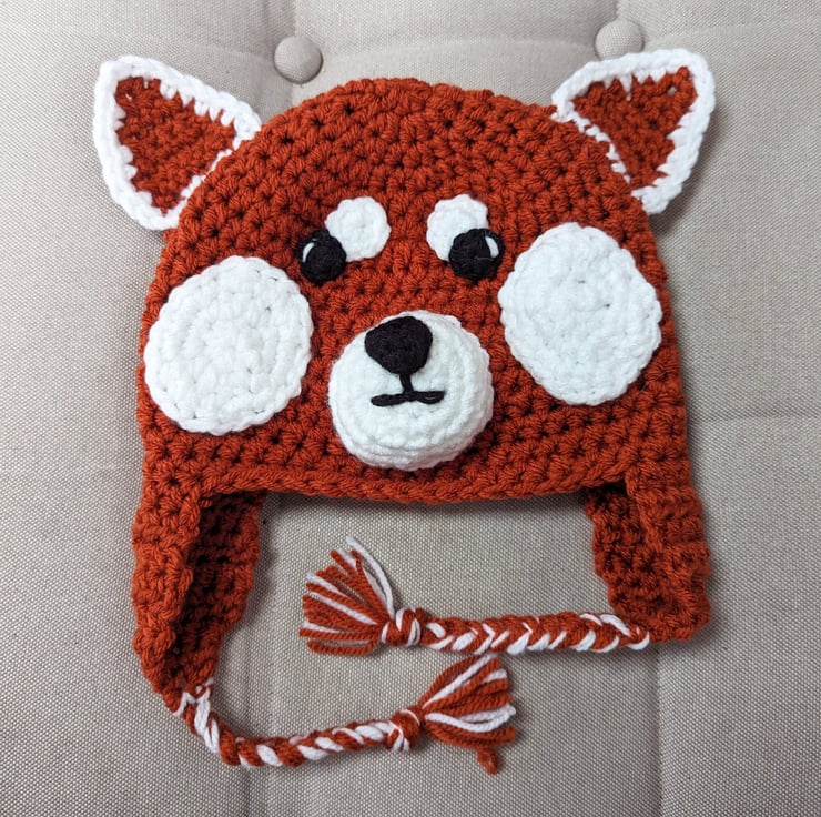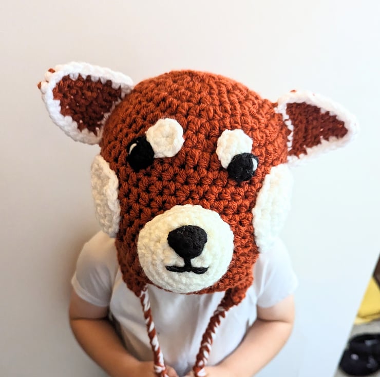 This hat is a lovely fun playful hat for those who love red pandas, these shy creatures are adorable.