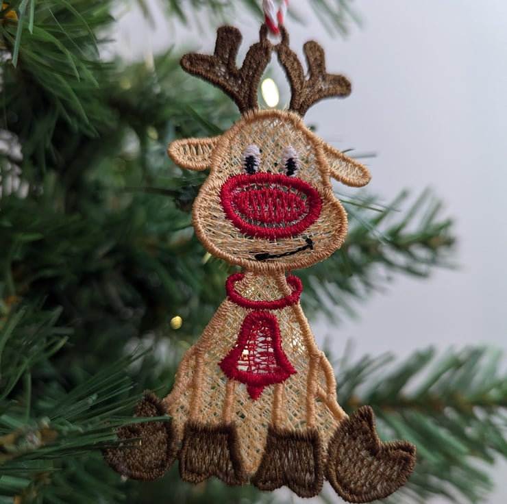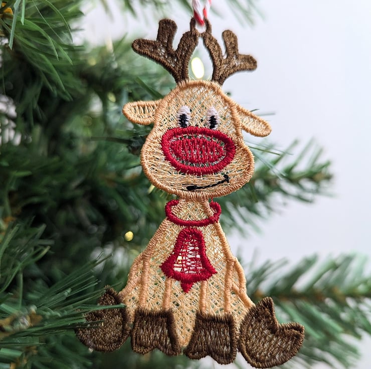 This beautiful Lace Christmas reindeer makes the perfect addition to your tree. Adding a bright pop of colour